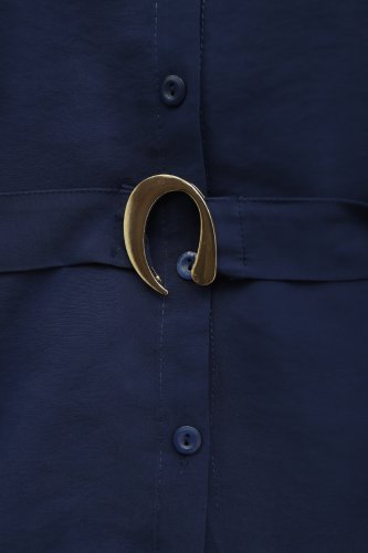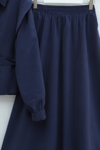 Omzu Vatka Detaylı Kemerli Eteği Lastikli Modal Takım Lacivert