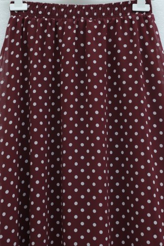 • Puantiyeli Beli Lastikli Astarlı Şifon Etek Bordo